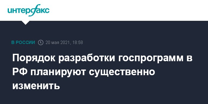 Москва. 20 мая. INTERFAX.RU - Правительство РФ в ближайшее время существенно поменяет порядок разработки государственных программ, заявил глава Минэкономразвития Максим Решетников на брифинге по итогам заседания правительства, на котором рассматривался ход реализации госпрограмм.