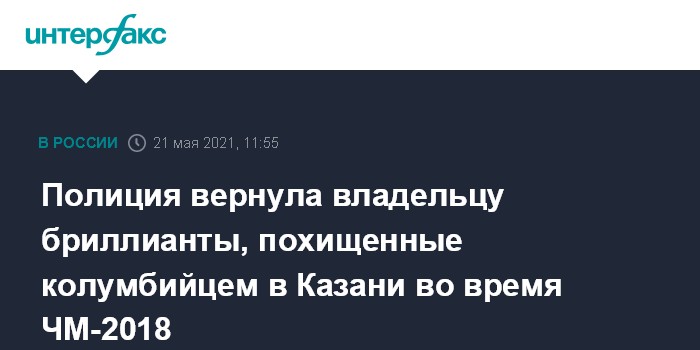 Полиция вернула владельцу бриллианты, похищенные колумбийцем в Казани во время ЧМ-2018