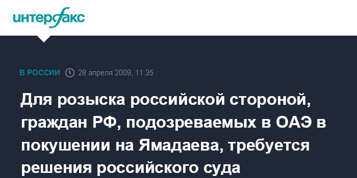 Для розыска российской стороной, граждан РФ, подозреваемых в ОАЭ в покушении на Ямадаева, требуется решения российского суда