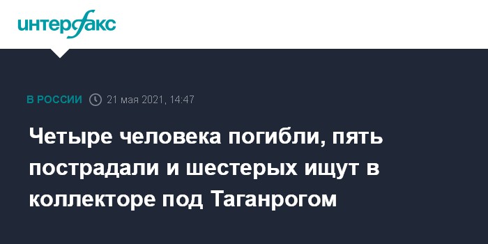 Москва. 21 мая. INTERFAX.RU - Жертвами инцидента на очистных сооружениях в Таганроге в Ростовской области, по уточненным данным, стали четверо рабочих, неизвестна судьба еще шести человек, сообщил "Интерфаксу" информированный источник.