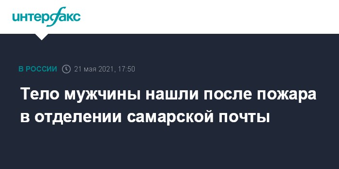 Москва. 21 мая. INTERFAX.RU - Спасатели обнаружили тело мужчины после возгорания в зале отделения "Почты России" в городе Кинель Самарской области. Об этом сообщает ГУ МЧС по региону.