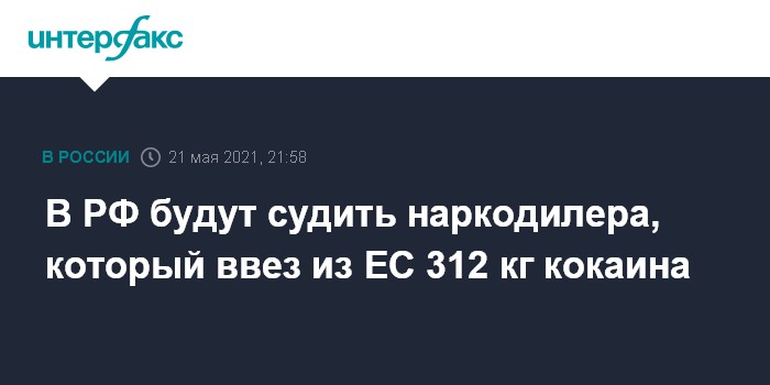 Москва. 21 мая. INTERFAX.RU - Лидер и участник преступной группы, которая занималась контрабандой кокаина и гашиша на территорию России из стран Евросоюза, предстанут перед судом. Из незаконного оборота изъято более 135 кг гашиша и свыше 312 кг кокаина.