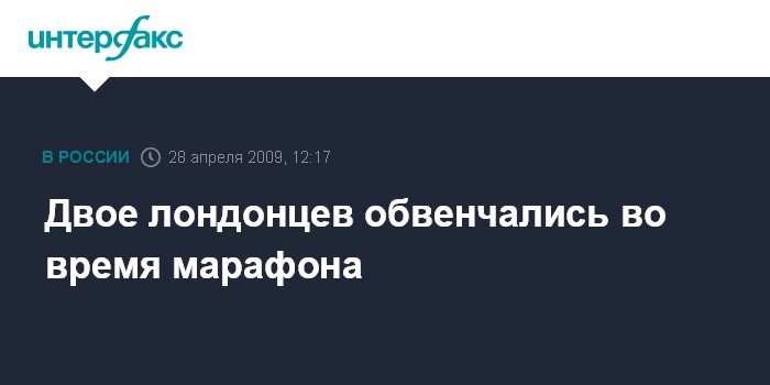 Москва. 28 апреля. INTERFAX.RU - Двое участников 28-го благотворительного марафона в Лондоне, в котором участвовало 35 тысяч человек, успели обвенчаться между стартом и финишем, сообщает британская газета "Дейли мэйл".