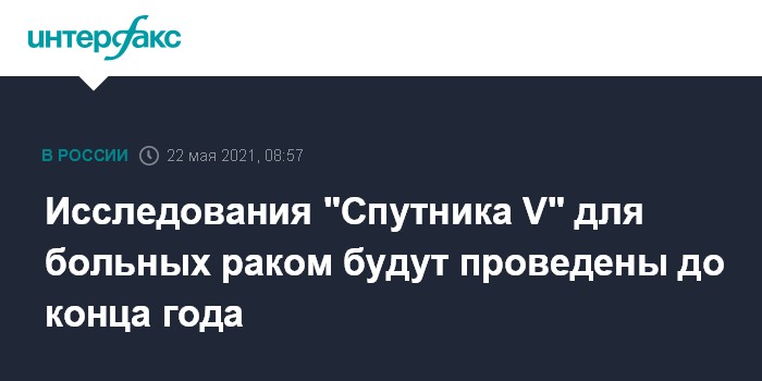 Москва. 22 мая. INTERFAX.RU - Клинические исследования на эффективность и безопасность вакцины от коронавируса "Спутник V" для больных онкологическими заболеваниями будут проведены до конца года, заявил заместитель директора по научной работе центра им. Гамалеи Минздрава России Денис Логунов.