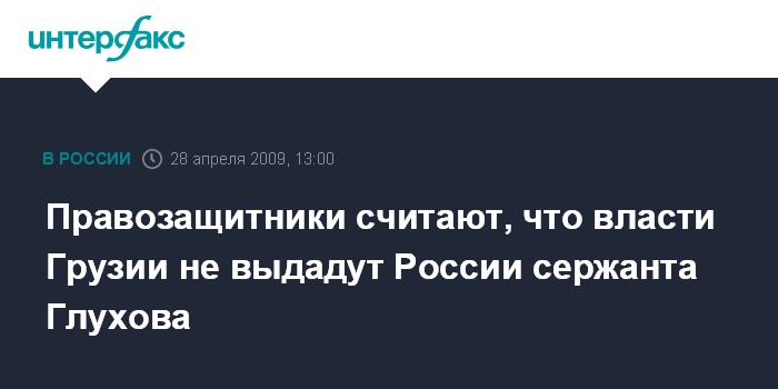 Москва. 28 апреля. INTERFAX.RU - В Союзе комитетов солдатских матерей России скептически оценивают шансы российской Генпрокуратуры РФ добиться от Грузии выдачи сержанта Александра Глухова, обвиняемого в дезертирстве.