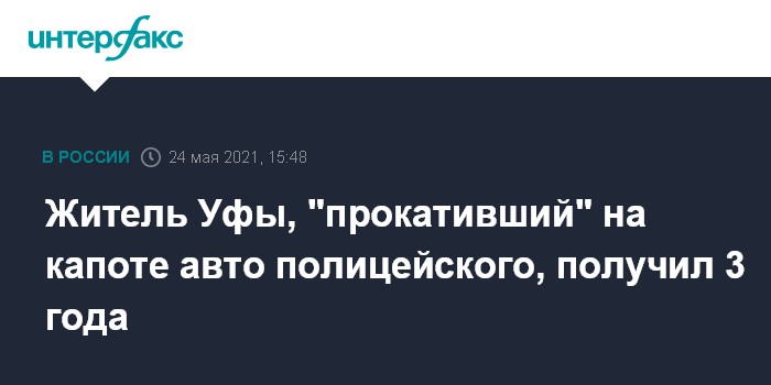 Москва. 24 мая. INTERFAX.RU - Кировский районный суд Уфы вынес приговор водителю Артуру Газизову, протащившему на капоте автомобиля сотрудника полиции, сообщила пресс-служба прокуратуры Башкирии в понедельник.