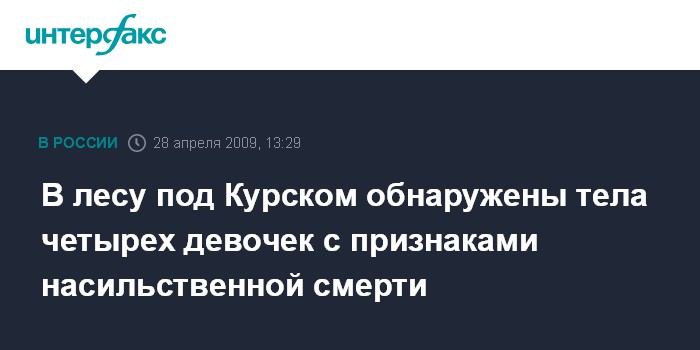 Там отметили, что СКП по Курской области возобновил уголовное дело по факту безвестного исчезновения в июле 2000 года четырех несовершеннолетних. Такое решение принято в связи с тем, что 23 апреля их тела с признаками насильственной смерти были обнаружены в лесном массиве вблизи поселка Ворошнево Курского района Курской области.