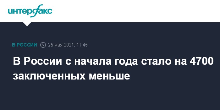 Москва. 25 мая. INTERFAX.RU - В России в пенитенциарных учреждениях с начала 2021 года стало на 4700 заключенных меньше, и это произошло благодаря мерам по гуманизации уголовного законодательства и правоприменительной практики, заявил на заседании Совета судей председатель Верховного суда России Вячеслав Лебедев.