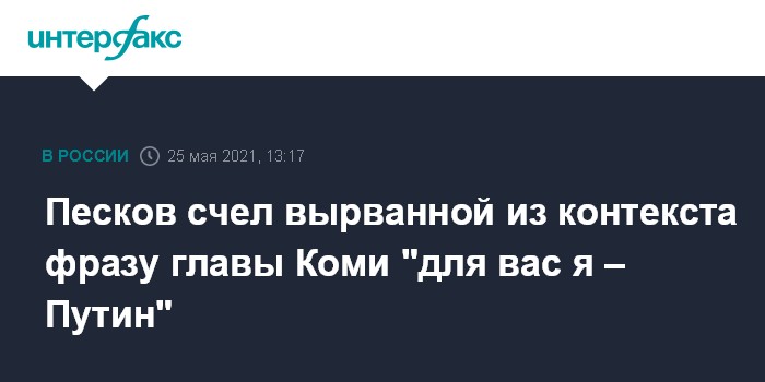 Песков счел вырванной из контекста фразу главы Коми "для вас я – Путин"