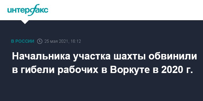 Начальника участка шахты обвинили в гибели рабочих в Воркуте в 2020 г.