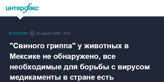 "Свиного гриппа" у животных в Мексике не обнаружено, все необходимые для борьбы с вирусом медикаменты в стране есть