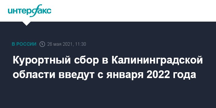 Москва. 26 мая. INTERFAX.RU - Власти Калининградской области готовят региональный закон о курортном сборе, сбор введут с начала 2022 года, сообщил министр культуры и туризма региона Андрей Ермак. Он пообещал, что законопроект будет выставлен на общественное обсуждение.