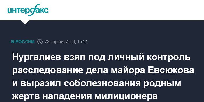 Нургалиев взял под личный контроль расследование дела майора Евсюкова и выразил соболезнования родным жертв нападения милиционера