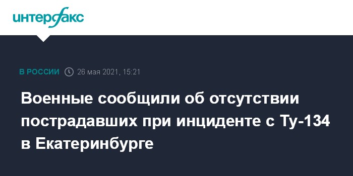 Военные сообщили об отсутствии пострадавших при инциденте с Ту-134 в Екатеринбурге