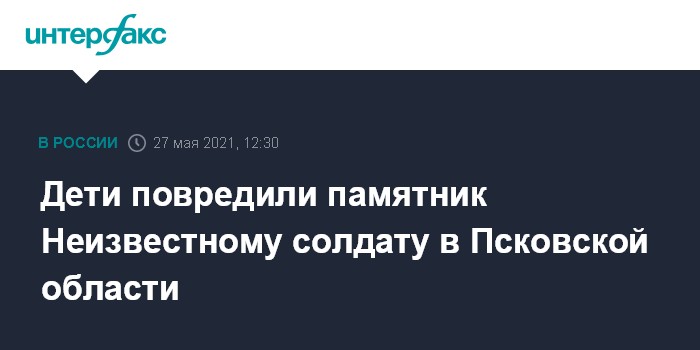 Москва. 27 мая. INTERFAX.RU - Установлены личности граждан, повредивших памятник Неизвестному солдату на братском кладбище в городе Великие Луки Псковской области.