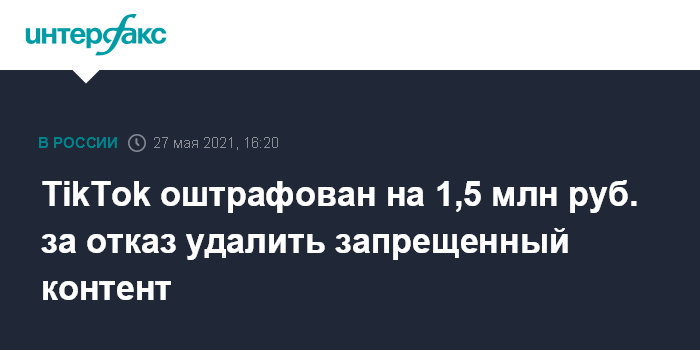 TikTok оштрафован на 1,5 млн руб. за отказ удалить запрещенный контент