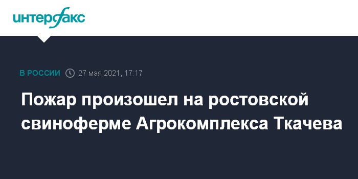 Москва. 27 мая. INTERFAX.RU - Пожар произошел на свиноферме в Ростовской области, принадлежащей "Агрокомплексу им. Н.И.Ткачева", одному из крупнейших агрохолдингов в России.