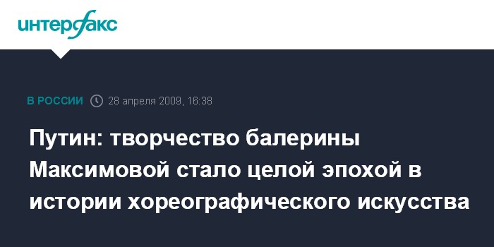 Путин: творчество балерины Максимовой стало целой эпохой в истории хореографического искусства