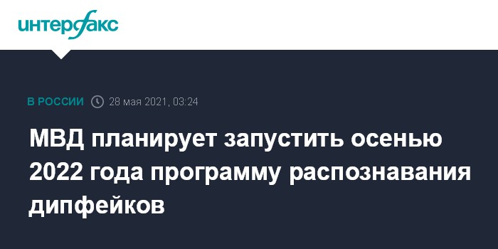 МВД планирует запустить осенью 2022 года программу распознавания дипфейков