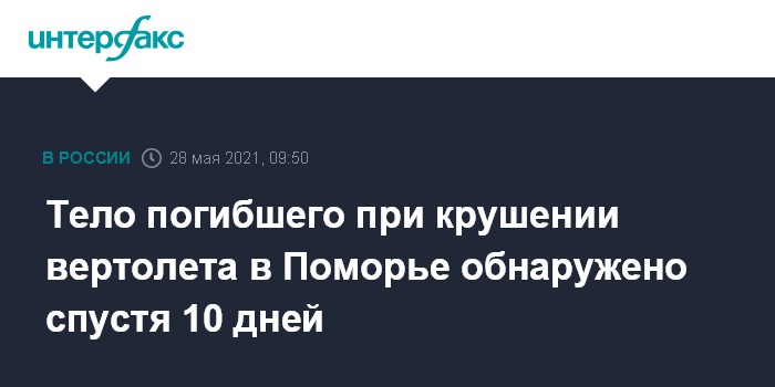 Тело погибшего при крушении вертолета в Поморье обнаружено спустя 10 дней