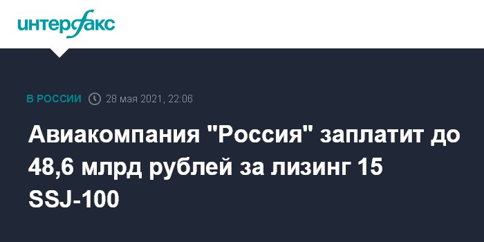 Авиакомпания "Россия" заплатит до 48,6 млрд рублей за лизинг 15 SSJ-100