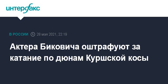 "Актер Бикович выложил в социальную сеть видеоролик, как он лихо катается на квадроцикле по дюнам Курской косы, по которым природоохранным законодательством даже ходить строго запрещено. По данному факту будет возбуждено административное производство, по результатам которого его привлекут к ответственности. С учетом того, что нарушений закона актером совершено сразу несколько, штрафов у него будет целый букет", - отметила Большакова.