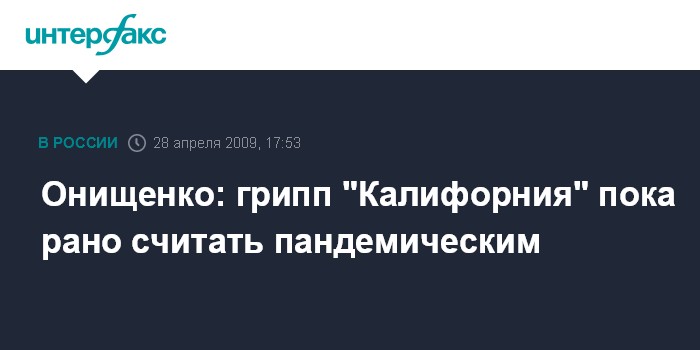 "Сегодня способность гриппа "Калифорния" передаваться от человека к человеку никто не отрицает. Но насколько эта передача легко осуществляется - этот вопрос пока не ясен. Скорее всего, уже передается, но еще недостаточно быстро, чтобы назвать его пандемическим штаммом", - заявил главный государственный санитарный врач РФ.