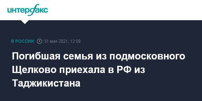 Москва. 31 мая. INTERFAX.RU - Семья из четырех человек, тела которых были обнаружены в подмосковном Щелково в минувшее воскресенье - мигранты из Таджикистана, переехавшие в Россию 10 лет назад и получившие гражданство РФ, сообщил "Интерфаксу" информированный источник.