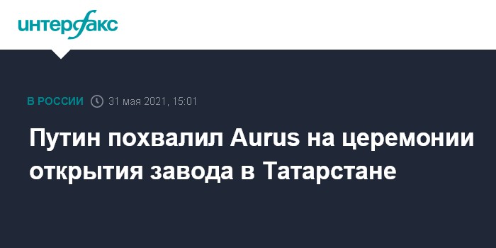 Москва. 31 мая. INTERFAX.RU - Президент РФ Владимир Путин назвал Aurus достойным и качественным автомобилем. Российский лидер принял по видеосвязи участие в церемонии открытия завода по производству Aurus в Елабуге.