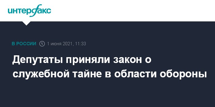 Москва. 1 июня. INTERFAX.RU - Госдума приняла сразу во втором и третьем чтении поправки в закон "Об обороне" (61-ФЗ), которые вводят понятие служебной тайны в области обороны.