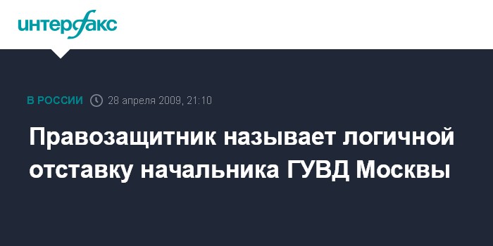 Москва. 28 апреля. INTERFAX.RU - Правозащитник считает, что отставка начальника ГУВД Москвы не решит проблем, которые накопились в правоохранительной системе.