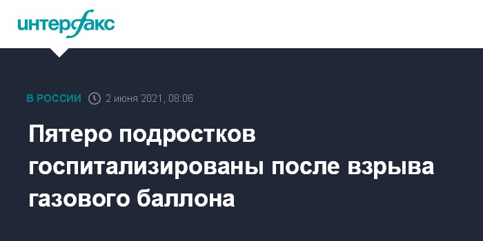 Москва. 2 июня. INTERFAX.RU - В Вологодской области пять подростков попали в больницы после взрыва газового баллона, который они пытались разобрать. Они получили травмы, один из них в тяжелом состоянии, сообщил "Интерфаксу" информированный источник.