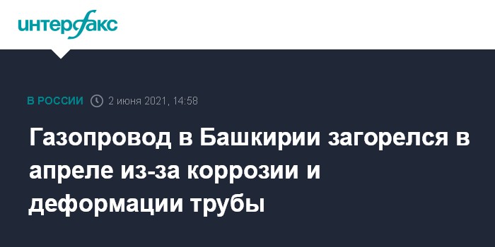 Газопровод в Башкирии загорелся в апреле из-за коррозии и деформации трубы
