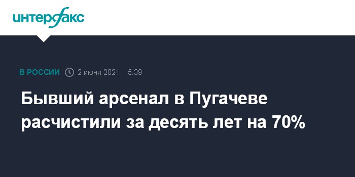 Москва. 2 июня. INTERFAX.RU - В Удмуртии территория бывшего артиллерийского арсенала в поселке Пугачево расчищена более чем на 70%, с нее убраны опасные предметы, сообщил начальник регионального управления МЧС Петр Фомин. Он сослался на доклад организации, которая занимается очисткой.