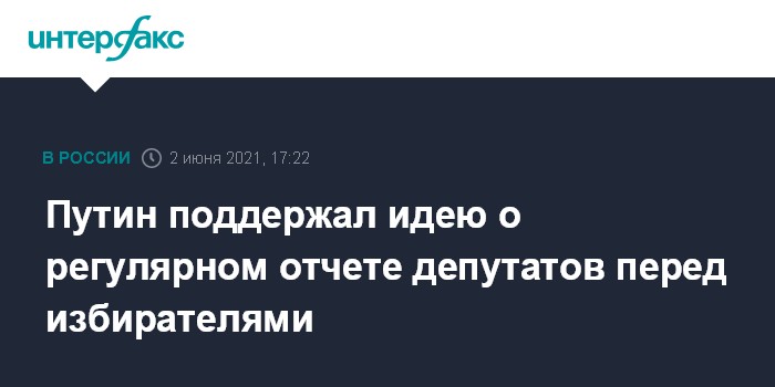 Москва. 2 июня. INTERFAX.RU - Президент РФ Владимир Путин поддержал предложение о введении обязательного отчета на постоянной основе парламентских партий и избранных депутатов перед своими избирателями.