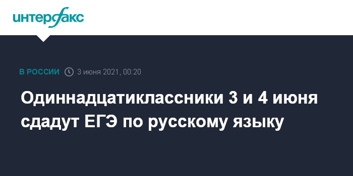 "3 и 4 июня основной период ЕГЭ-2021 продолжит экзамен по русскому языку. Это самый массовый экзамен, в этом году его сдают около 680 тысяч человек, в том числе порядка 626 тысяч выпускников текущего года", - говорится в сообщении пресс-службы ведомства.
