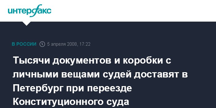 Санкт-Петербург. 5 апреля. ИНТЕРФАКС СЕВЕРО-ЗАПАД - В Конституционном суде (КС) РФ идет процесс подготовки документов, книг, личных вещей судей и другого имущества для транспортировки в Санкт-Петербург.