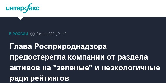 "Когда вы разделяете активы на хорошие и плохие: здесь экологично, а здесь совсем не мы, - так не бывает", - заявила Радионова на сессии "ESG-трансформация корпоративных стратегий. Как пандемия стимулировала переход к устойчивому развитию". По ее словам, происходит отчуждение части активов ("шламонакопители, отвалы и все остальное") в другие юридические лица, у которых, как выразилась глава Росприроднадзора, "10 тыс. рублей уставного фонда, директор, собака и охранник в одном лице".