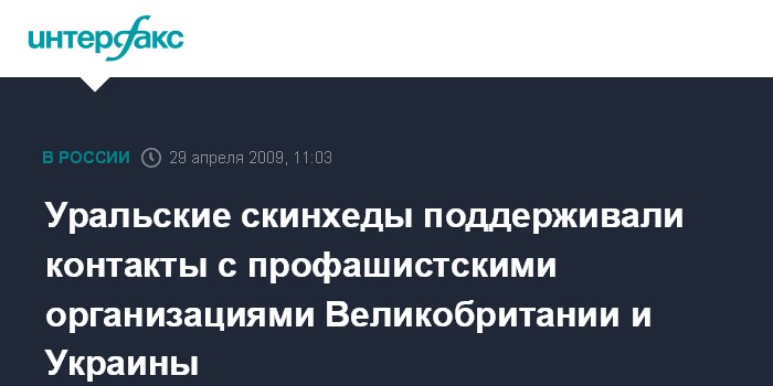 "В 2008 и 2009 годах на Урале, как и по всей стране, вскрыта деятельность скинхедов. Установлены их связи с так называемым боевым крылом этой организации в Москве, Санкт-Петербурге, Нижнем Новгороде. Установлено также, что они поддерживали контакты с профашисткими организациями Великобритании и Украины", - заявил он в среду в Екатеринбурге на научно-практической конференции, посвященной борьбе с экстремизмом.