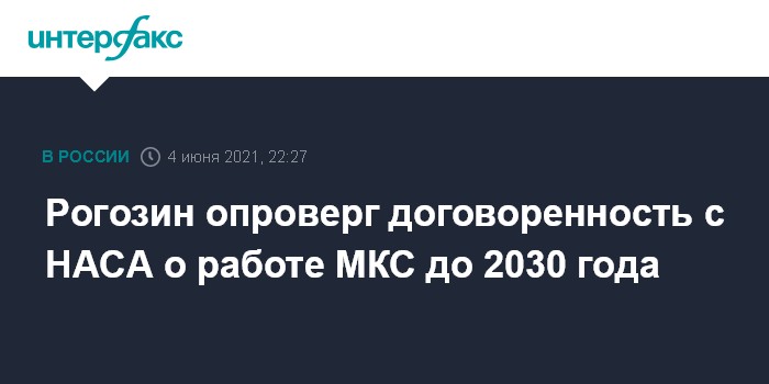 Рогозин опроверг договоренность с НАСА о работе МКС до 2030 года