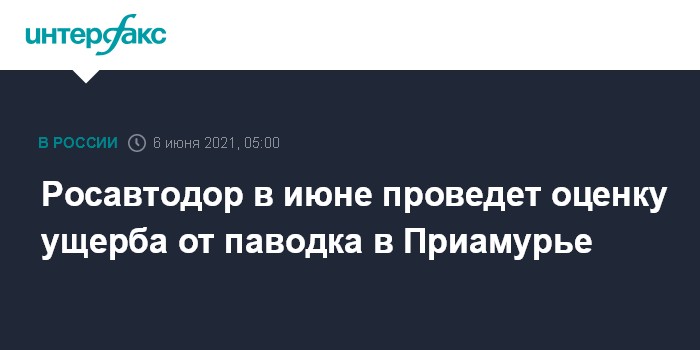 Москва. 6 июня. INTERFAX.RU - Комиссия федерального дорожного агентства (Росавтодор) с 15 июня приступит к оценке ущерба от подтопления дорог во время паводков в Амурской области, тем временем местные власти выделили дополнительно на ремонт дорог 500 млн рублей, сообщает в воскресенье региональный Минтранс.
