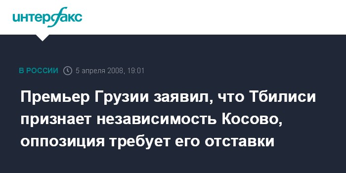 Премьер Грузии заявил, что Тбилиси признает независимость Косово, оппозиция требует его отставки