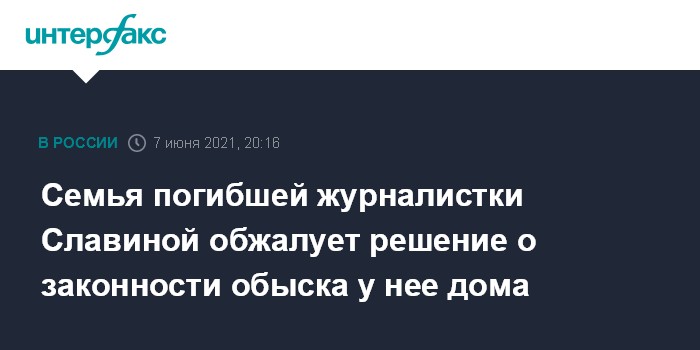 Семья погибшей журналистки Славиной обжалует решение о законности обыска у нее дома