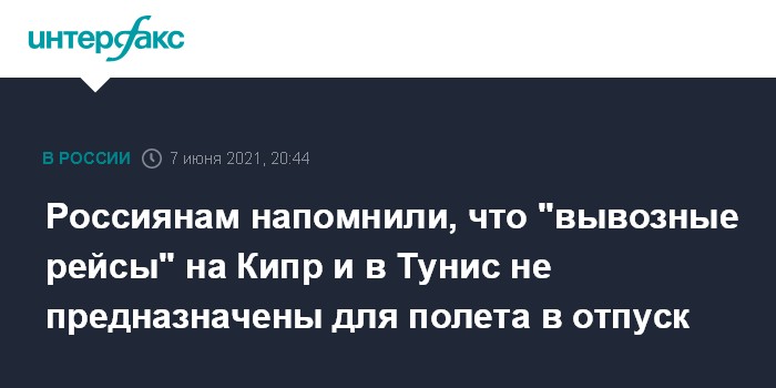 В настоящее время с "целым рядом стран, включая Кипр и Тунис, регулярное авиасообщение не возобновлено", говорится в совместном заявлении двух ведомств, поступившем в "Интерфакс" в понедельник.