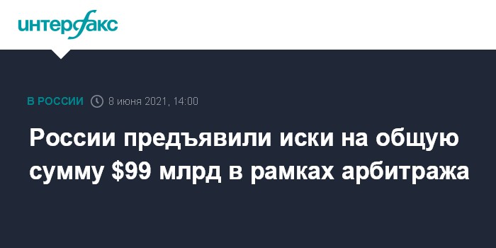 России предъявили иски на общую сумму $99 млрд в рамках арбитража