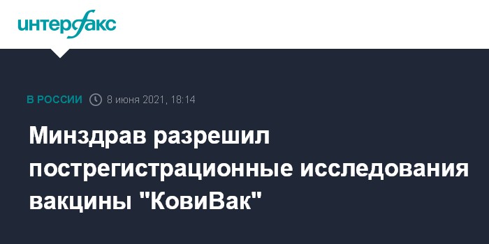 Москва. 8 июня. INTERFAX.RU - Центр имени Чумакова получил разрешение на проведение пострегистрационных исследований своей вакцины от коронавируса, следует из реестра клинических исследований Минздрава.
