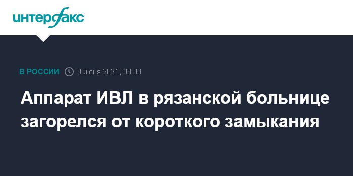 Москва. 9 июня. INTERFAX.RU - В больнице имени Семашко в Рязани, где три человека погибли при пожаре, аппарат ИВЛ был исправным, но не адаптированным к перепадам напряжения в сети, он загорелся от проводки после короткого замыкания, сообщили "Интерфаксу" в администрации клиники.