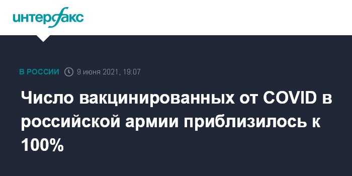 11 мая глава Минобороны заявил, что в ВС РФ привиты от COVID-19 более 800 тыс. человек, план по вакцинации выполнен.