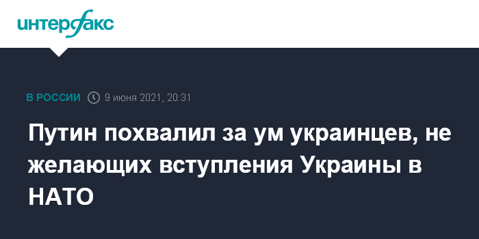 Москва. 9 июня. INTERFAX.RU - Президент РФ Владимир Путин назвал умными людьми противников вступления Украины в НАТО, так как они не хотят оказаться на линии огня и стать пушечным мясом.