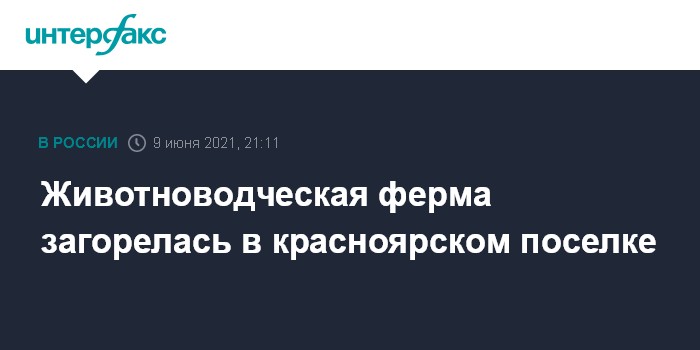 Москва. 9 июня. INTERFAX.RU - Частная животноводческая ферма горит в Красноярском крае на площади в 1,5 тысячи квадратных метров.